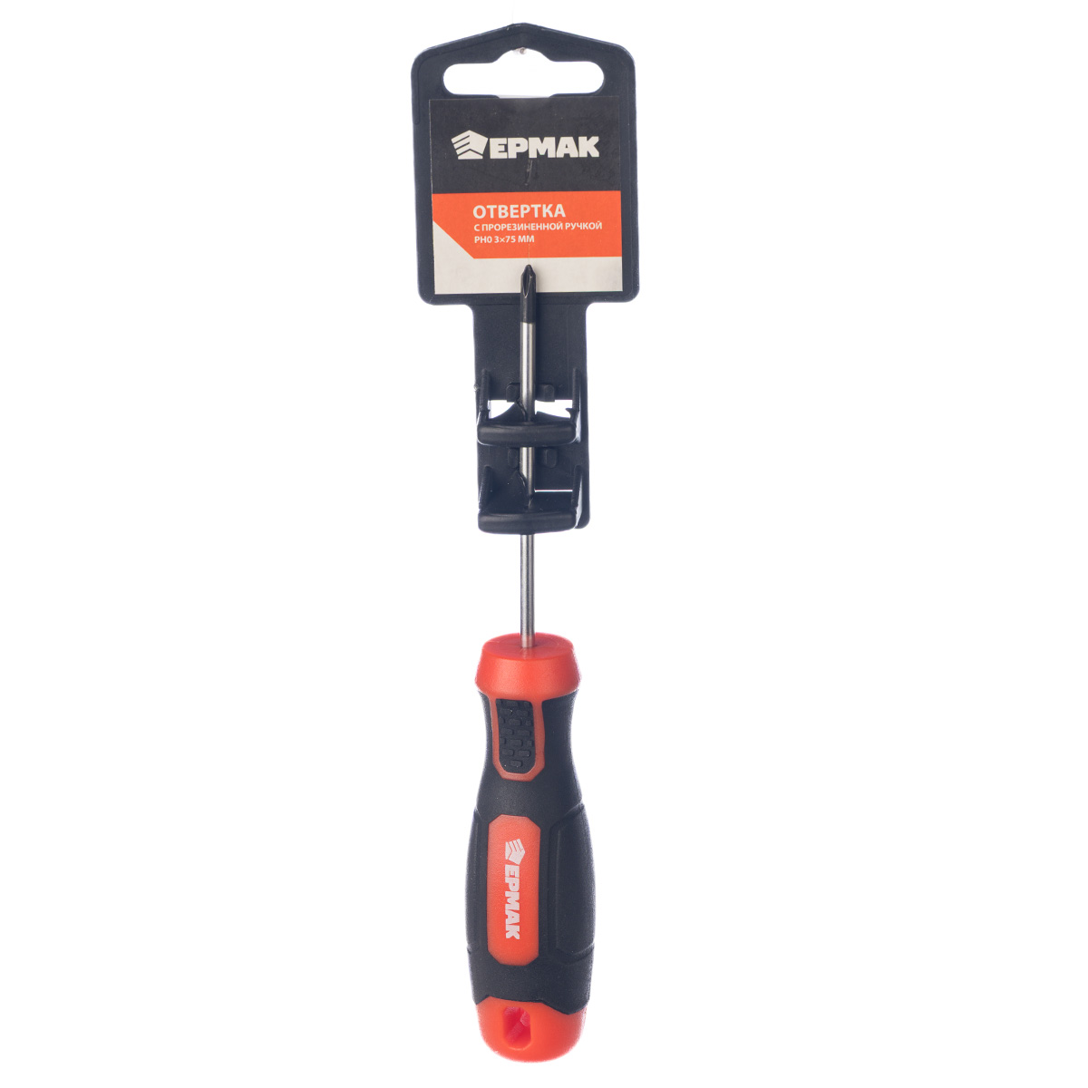 Отвертка с прорезиненной ручкой PH0 3х75мм, намагниченный шлиц (soc533411)