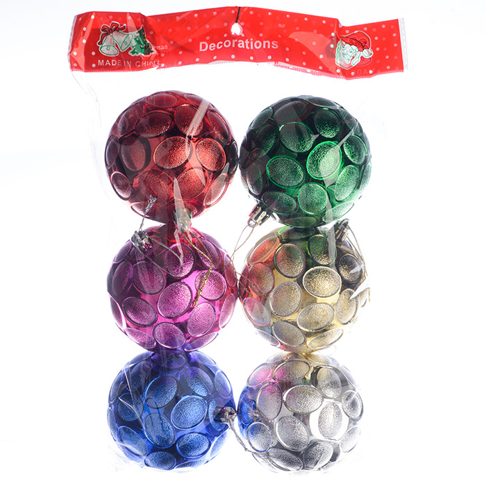 Новогоднее украшение, елочное шары 8см, цветные уп6шт, 3L8607 (soc524361)