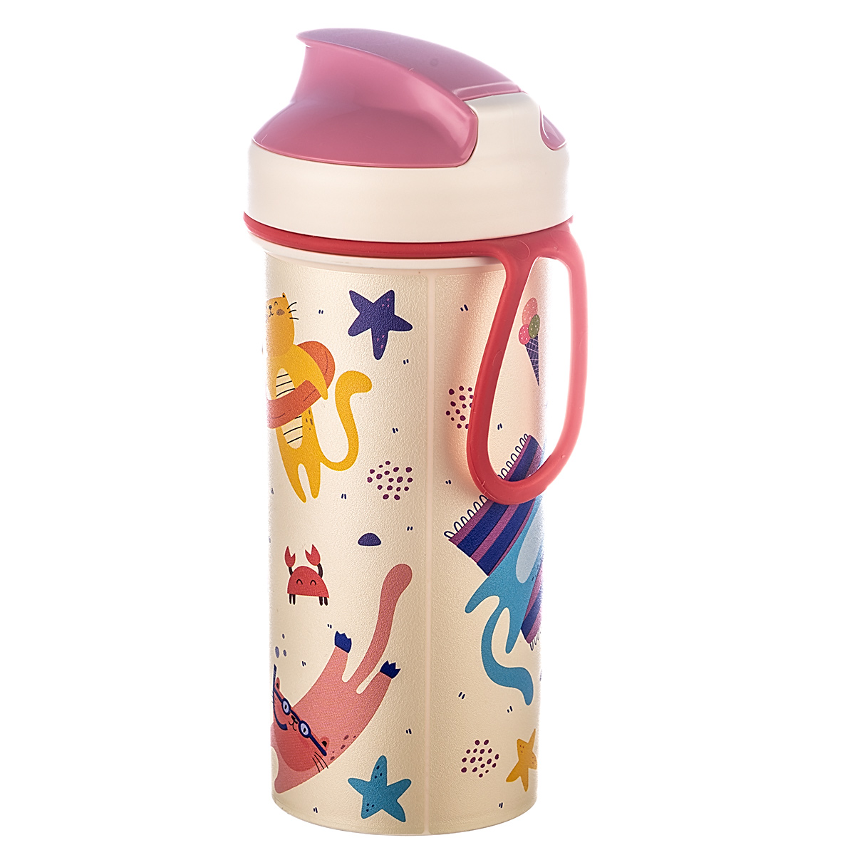 СТАКАН ДЕТСКИЙ С КРЫШКОЙ, ПЕТЛЕЙ И ДЕКОРОМ 400МЛ (Розовый) , артикул 192