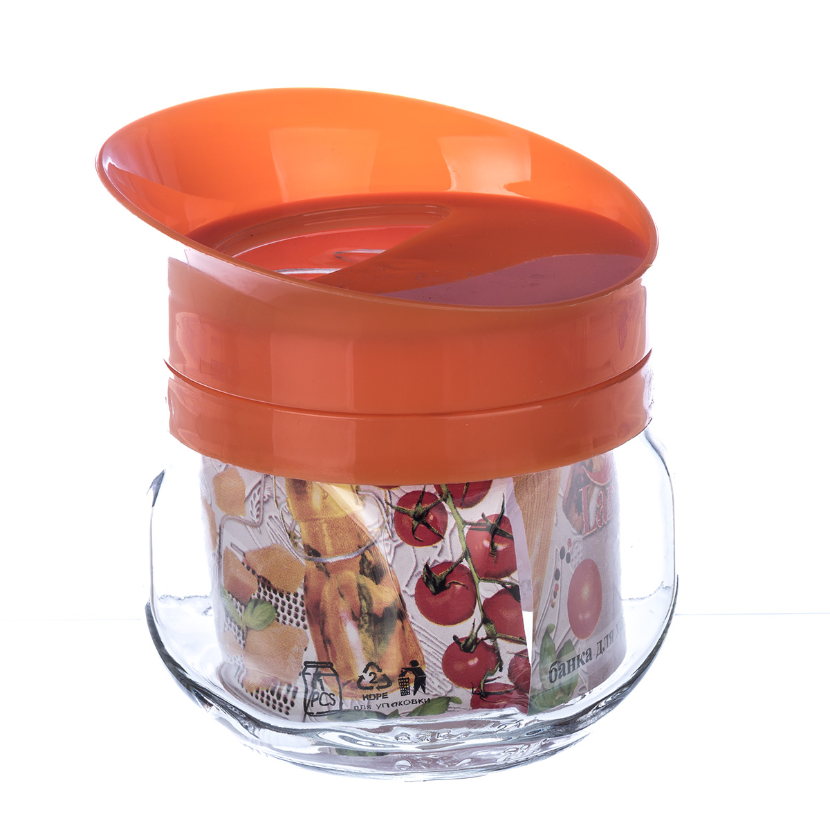 Банка для хранения стекл 0,35л ТО-82 с пласт крышкой-дозатором поворотным мандарин