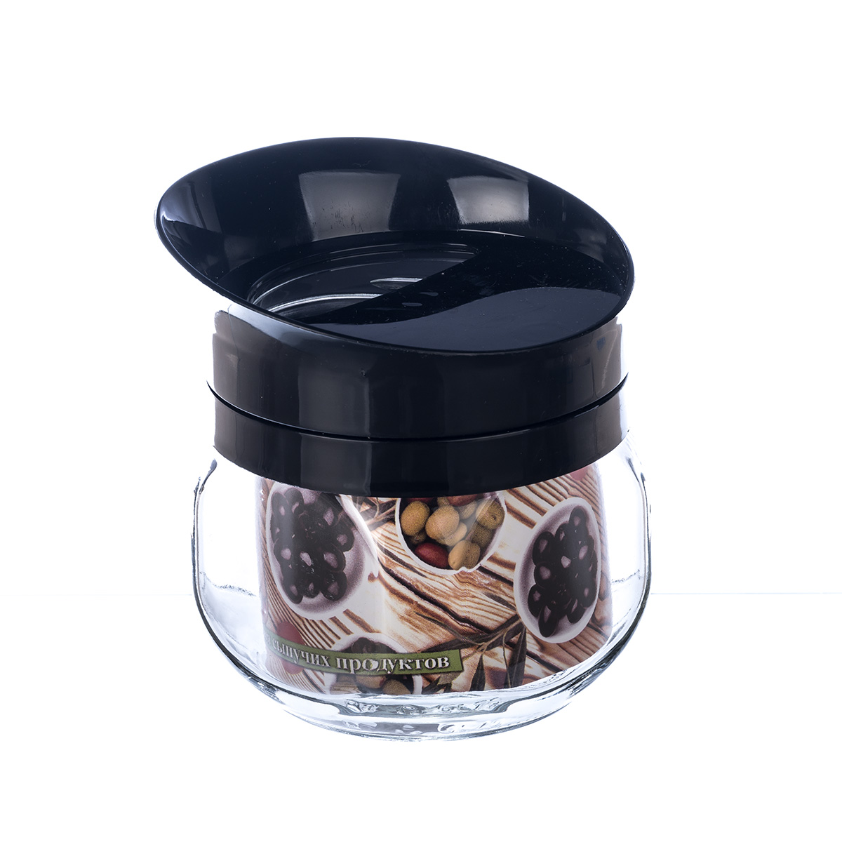 Банка для хранения стекл 0,35л ТО82 с пласт. поворотной чёрной крышкой-дозатором