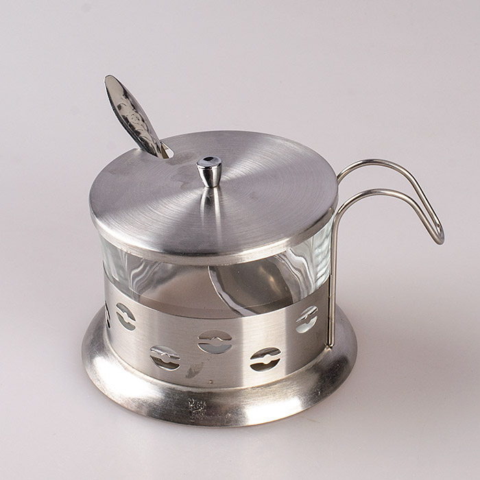 Сахарница в металлическом подстаканнике, стеклянная НТ04-S В1 (soc26435)