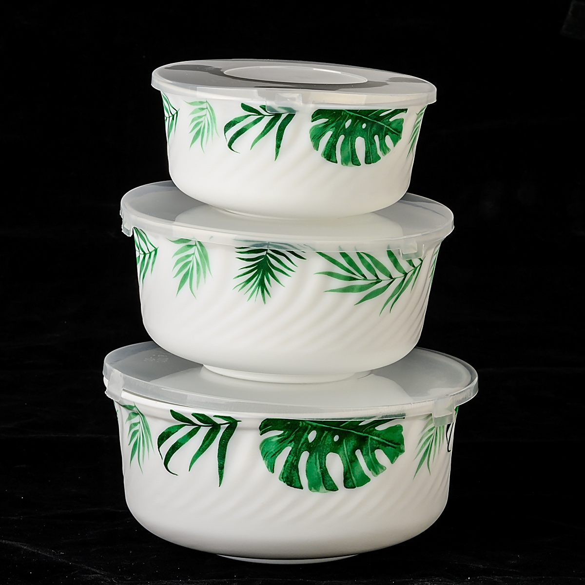 Набор салатников с крышками 3 шт (500 мл, 800 мл, 1200мл) Папоротник