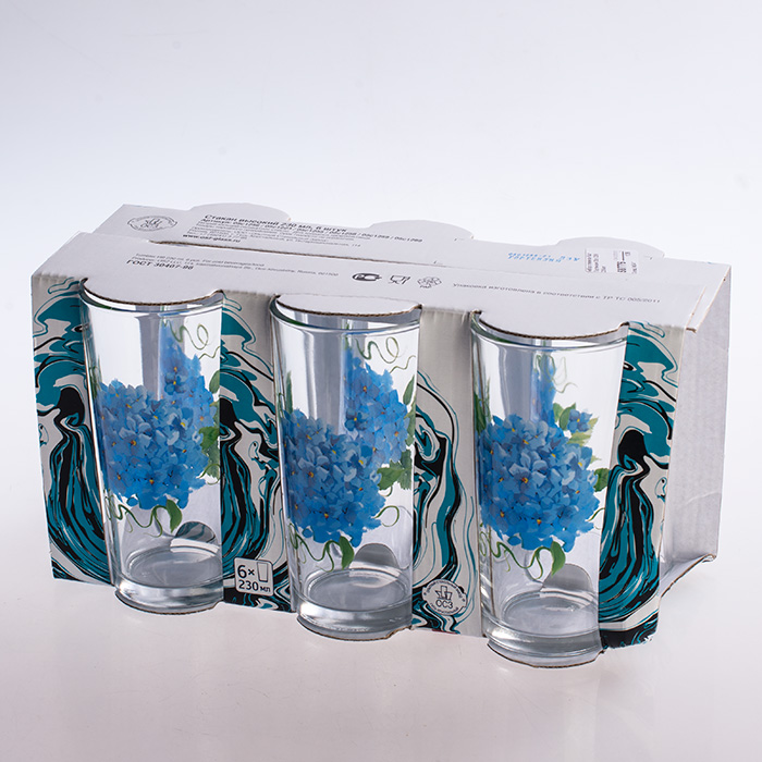 Набор стаканов стеклянных ОСЗ Ода Гортензия, 230 мл, 6 штук, артикул 05с1256 (soc58776)
