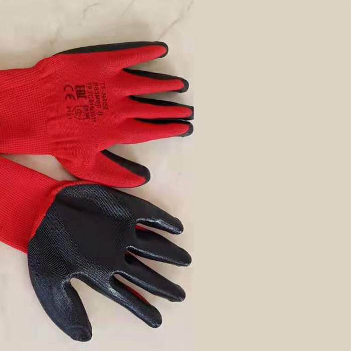 Перчатки нейлон, красный, чёрный нитрил, N402,