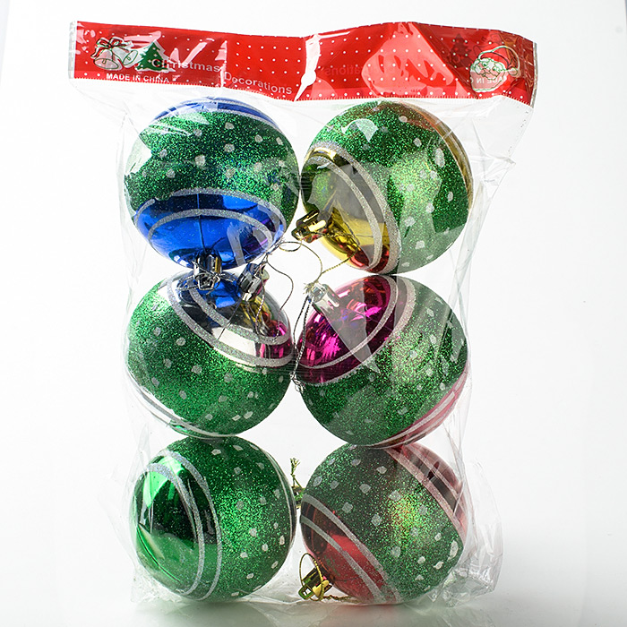 Новогоднее украшение на елку пластмассовое, 8см, 6 штук, SH-010 (soc504807)